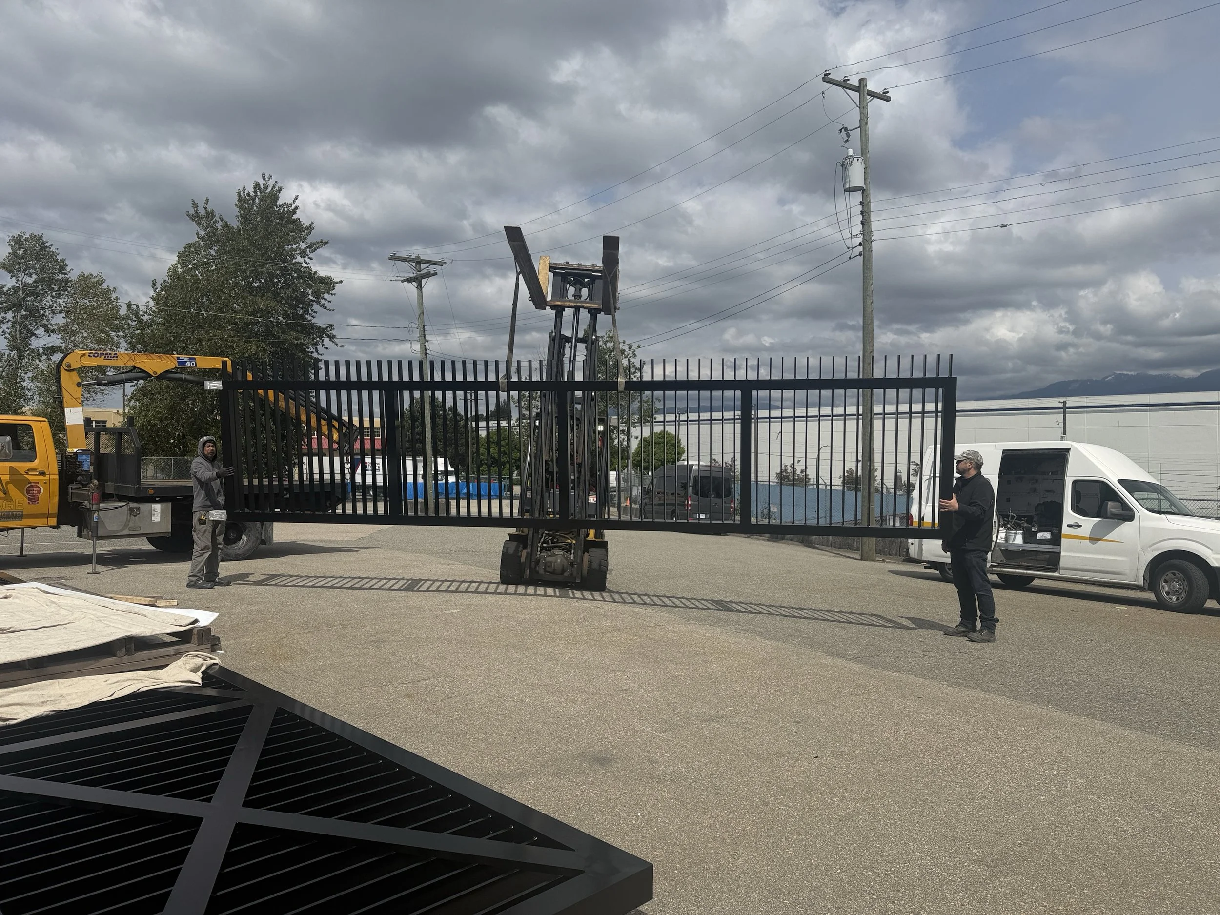 This sliding cantilever gate in Vancouver was engineered by Iron Age to provide exceptional performance, durability, and architectural style. This project showcases the installation of one of Vancouver’s longest architectural sliding gates — measuring 50 feet overall. Unlike the common chainlink or lightweight gates, this aluminum gate is built for performance, durability, and style, equipped with a full LiftMaster cantilever automation system.
