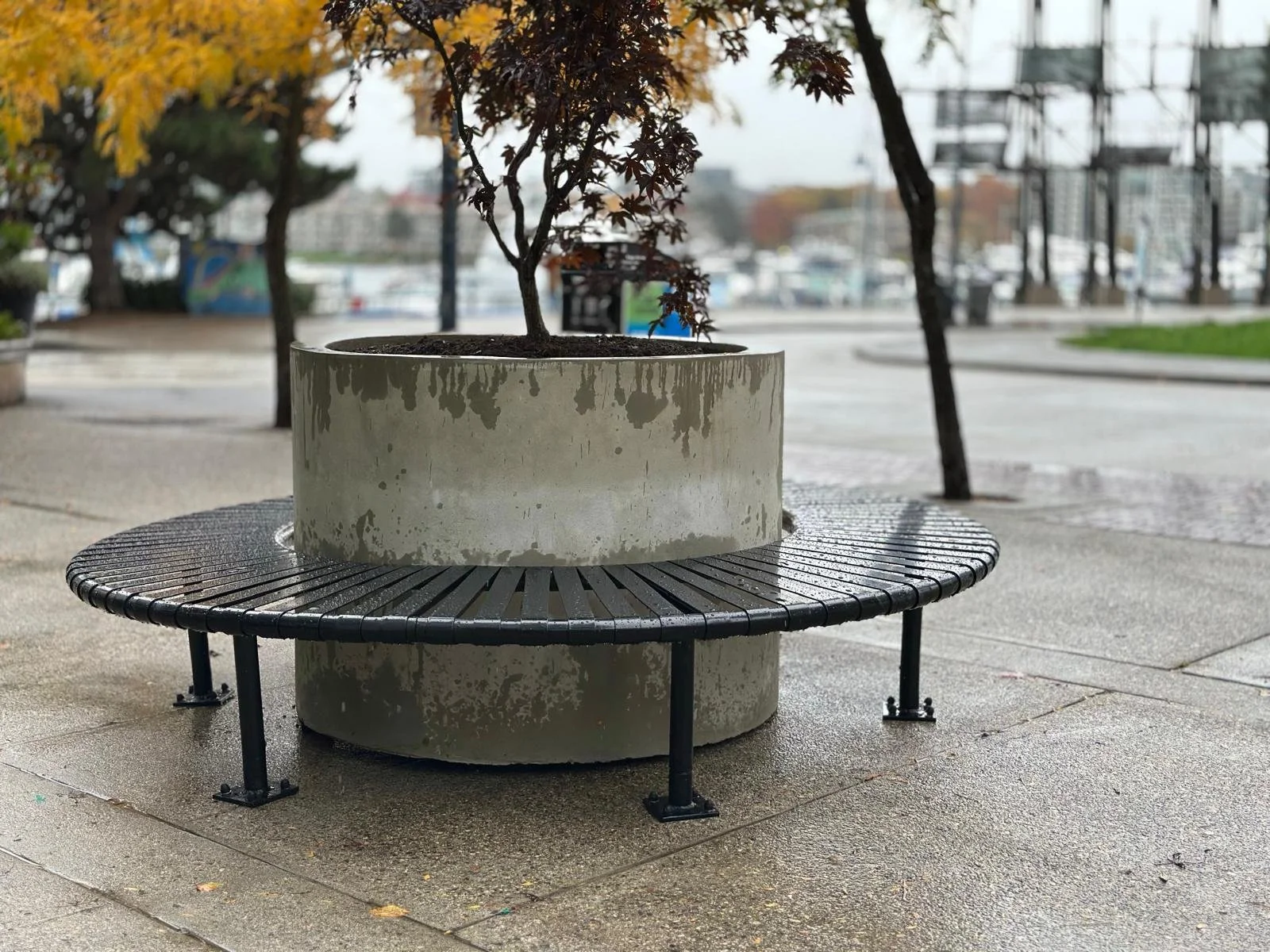 In the vibrant neighborhood of Yaletown, Vancouver, Iron Age Manufacturing Ltd. has crafted and installed a custom circular metal tree bench that redefines how urban furniture can blend form and function.